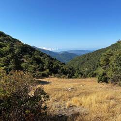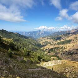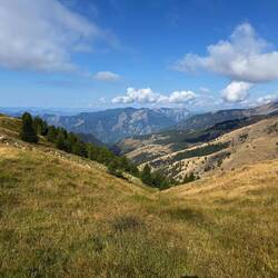 Une nouvelle étape de 30 kilomètres, mais avec moins de dénivelé positif, achève la traversée du parc national du Mercantour. L’itinéraire passe d’abord par un dernier col, longe les crêtes, puis entame une longue descente à travers forêts de conifères, alpages, pins et oliveraies.
