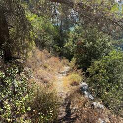 Ça bouge dans les sous-bois impénétrables, jusqu’à ce qu’un sanglier surgisse sur le sentier devant moi. Heureusement, ce n’est qu’une femelle, et elle prend aussitôt ses pattes à son cou… et pas de petit copain dans les parages 🐗.