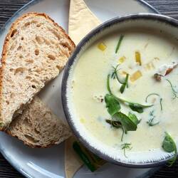 De retour, un lunch écossais composé d’une Cullen Skink, soupe au haddock fumé, et d’un beef rack bien d’ici.