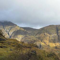 Au passage, les montagnes des Three Sisters 😉 dans la vallée de Glencoe, parcourues par des sentiers qui offrent des vues spectaculaires sur des falaises abruptes, des cascades et une végétation de bruyères et de fougères en abondance.