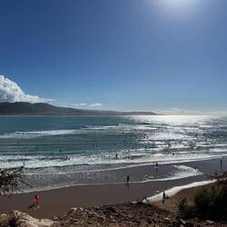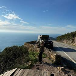 En route pour Nazaré, LE spot des surfeurs, qui offre à cette période de l’année des vagues pouvant atteindre 30 mètres de haut. Mais pas aujourd’hui: calme, malgré tout spectaculaire. Comme demain s’annonce assez pluvieux, nous décidons de nous rapprocher de Lisbonne afin d’y arriver tranquillement le lendemain matin. Malheureusement, les trois ou quatre endroits repérés sont tous soit barricadés, soit remplacés par des lotissements en cours de construction. La nuit tombe et la possibilité de trouver un emplacement s’évanouit comme l’écume sur la plage, jusqu’à ce que nous trouvions, au bout d’une descente incertaine, une corniche surplombant la mer, où, à quelques mètres seulement en contrebas, les vagues viennent se jeter contre la falaise. Souvent, les lieux les plus spectaculaires sont les plus improbables, au bout d’un chemin qu’on hésiterait à reprendre 🫣.Read more
