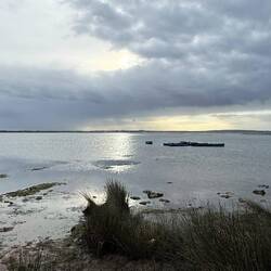 Pour la première fois, nous avons laissé le chauffage en mode minimum pour la nuit, et du coup, la cabine reste complètement au sec. Au milieu d’une formation rocheuse que nous avons trouvée hier soir, et qui nous semble, dans cette grisaille matinale, bien isolée, nous apprécions particulièrement notre petit-déjeuner au sec ☕️🥐☕️🍳☕️.