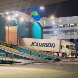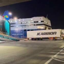 À l’heure de l’embarquement, l’interminable file de camions sortants se heurte à l’inclinaison trop forte de la rampe, due à la marée haute. Impossible pour certains de sortir sans toucher le quai avec l’avant de la cabine. La police est sur place et les constats sont faits.