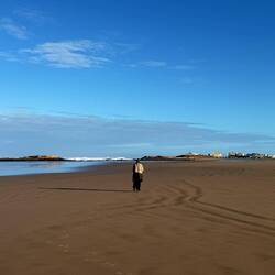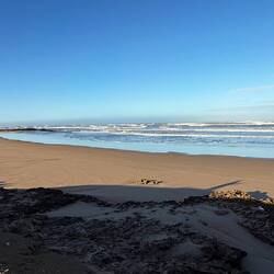 Réveillés par le jour qui se lève, nous sommes à l’abri derrière une dune qui nous protège d’un Atlantique qui nous semble déchaîné. Préparatifs tranquilles: café, re-café, petit-déjeuner, puis ouverture des volets pour que la brise imprègne notre espace de vie d’une nouvelle journée. Balade sur la dune, face à une plage déserte jusqu’au village suivant, tout aussi désert en cette période hivernale. Les maisons semblent abandonnées et les quelques habitants qui résistent sont regroupés dans le seul café ouvert.