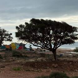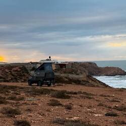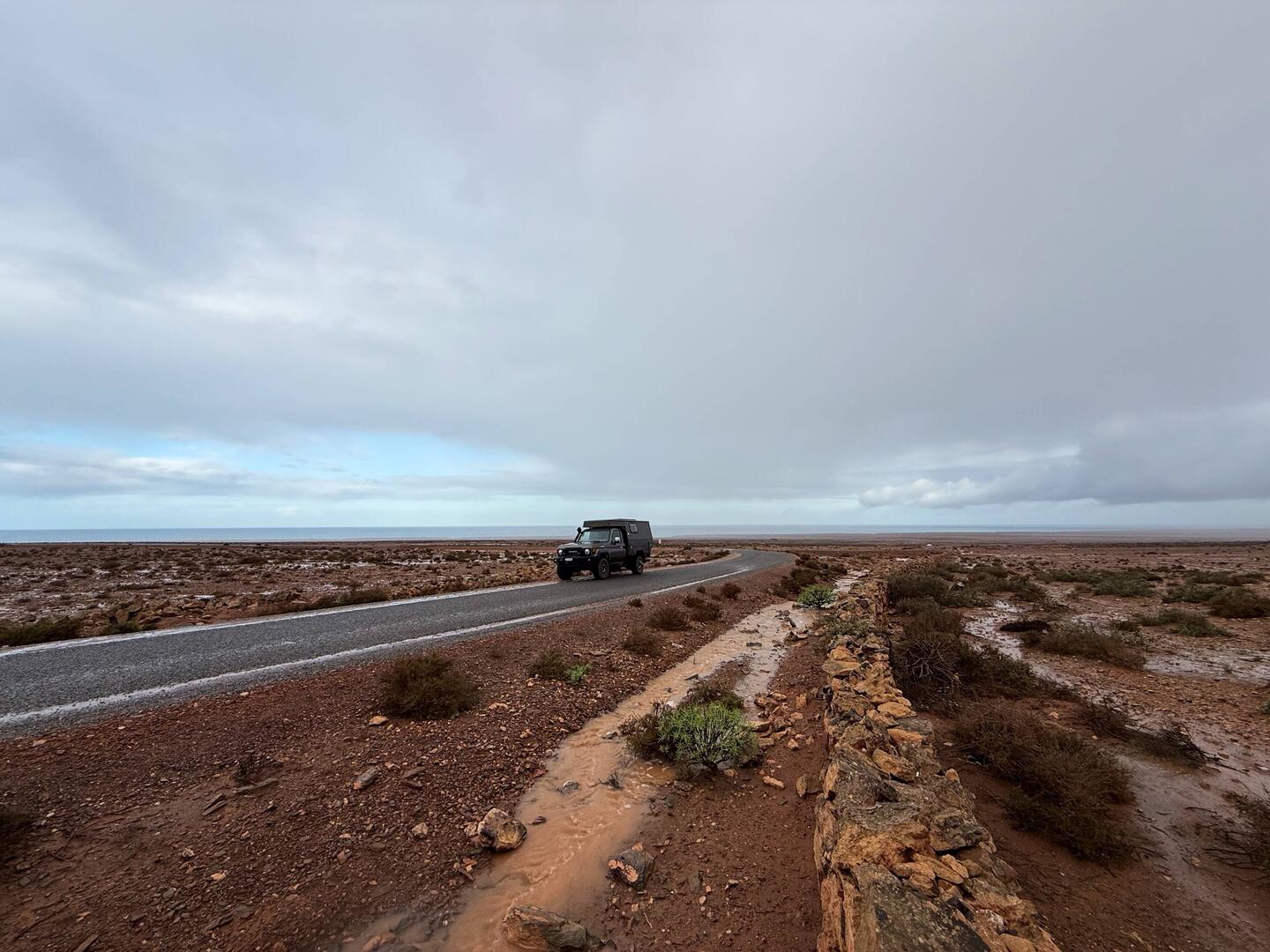 Aujourd’hui, quelques heures de trajet sous des pluies diluviennes. Les chaussées se sont transformées en ruisseaux et les ruisseaux en torrents. Les habitants, inquiets, observent à distance rassurante ce qui se passe dans ces lits de ruisseaux habituellement paisibles et le plus souvent asséchés. Nomade trace sa route à travers l’eau et la boue, et nous croisons les regards inquiets des passagers de voitures ou de campers arrêtés sur le bas-côté. Enfin, nous attaquons notre première traversée de l’Anti-Atlas occidental: collines et petits massifs rocheux, souvent ocres ou brun-gris, parfois sur la même paroi, voire la même pierre, pour arriver de l’autre côté sur la côte de Aït Baamrane, d’une beauté sauvage inouïe, que nous explorerons demain avant de remonter dans des collines que nous espérons ne pas trop trempées. Pour l’instant, au bout du chemin, un endroit solitaire surplombant la mer pour nous installer tranquillement…Jusqu’à ce que, vers 21 heures, deux jeunes militaires, lampe torche à la main et fusil en bandoulière, toquent poliment à notre porte pour nous assurer qu’ils ne voulaient en aucun cas nous expulser, mais que nous devrions, pour des raisons de sécurité, nous rapprocher de quelques centaines de mètres du hameau le plus proche. Définitivement, nous nous approchons du Sahara occidental, territoire où le Front Polisario, soutenu par l’Algérie, revendique l’indépendance.Read more