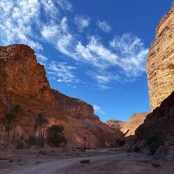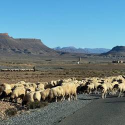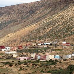 De Icht à Tafraout, une route sinueuse nous conduit à travers des canyons et des gorges étroites. Nous avons l’impression de nous approcher de l’Anti-Atlas et de passer d’un monde sahraoui à un monde montagnard berbère. La végétation est plus présente, mais les pluies des dernières semaines ont clairement laissé des traces: ponts effondrés, routes affaissées ou carrément disparues sous les éboulements. Les roches, de couleurs grises, roses, rouges et orangées, sont spectaculaires.