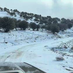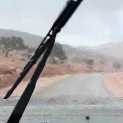 En direction de Fès, à travers le Moyen Atlas, la route est bloquée à l’entrée d’un village par une barrière de neige et deux policiers. Un car, deux bétaillères et trois voitures attendent patiemment. Aucun moyen de savoir si la route sera ouverte, et chacun a sa vérité : In shā’ Allāh. Apparemment, le déneigement est en cours quelque part. Alors on attend… pile à midi, la route est rouverte et la caravane avance, déneigeuse en tête, dans un nouveau paysage enneigé.