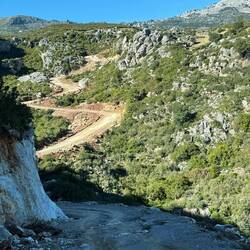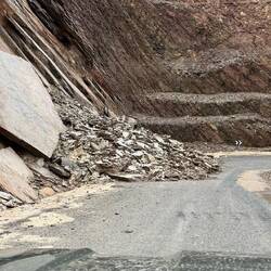 Au bout de 30 km, une barrière coupe la route: « interdit aux personnes non autorisées ». Au loin, nous percevons la trace de la route qui se perd dans la montagne. Il y a des moments où il vaut mieux renoncer😩.