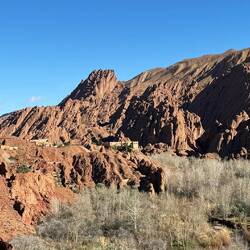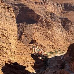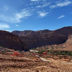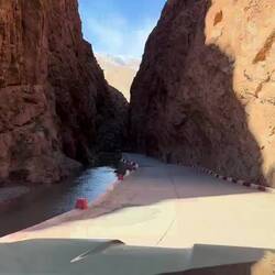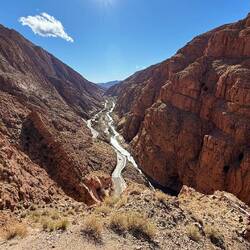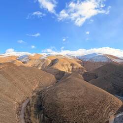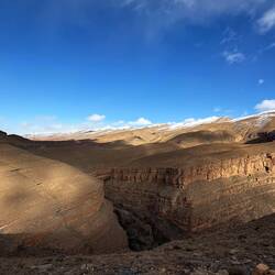 Arrêt courses et victuailles à Ouarzazate, puis, avec impatience, cap sur les gorges d’Ades dans le Haut Atlas. Le paysage montagnard, d’une beauté sauvage impressionnante, se dévoile peu à peu: nous avançons doucement, d’abord à travers des gorges constellées de formations rocheuses spectaculaires, puis en direction des cols à travers un décor qui dépasse toute tentative de description.