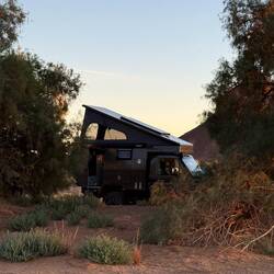 En descendant, nous nous arrêtons à la fin d’une série de canyons resserrés avec, incrustés dans la paroi, des maisons ou hameaux troglodytes. La nuit est tombée et nous avons trouvé un endroit plat, à côté d’une auberge, pour nous installer. Surprise: le chauffage s’arrête au bout d’une demi-heure et refuse obstinément de redémarrer. Une nuit glaciale en perspective 🥶… qui, pour finir, ne s’avère pas si grave: emmitouflés dans nos quêtes, nous avons l’impression d’être dans un bivouac en haute montagne avec l’avantage d’une machine à café pour nous réchauffer au matin.Read more