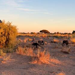 Après avoir fait nos adieux à Carotte, nous continuons en direction du lac Iriki, asséché la majeure partie de l’année. Une journée de pistes en vue: traînons un étendard de sable de près de 300 mètres, marquant notre présence, nous traçons à travers la plaine ouverte ou en slalomant entre les dunes.