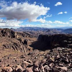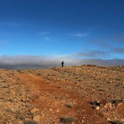 Nous coupons à travers le massif de l’Amadou n’Mansour jusqu’au col du Tizi n’Tazazert, à 2 300 mètres d’altitude. Heureux de retrouver la montagne et une ambiance aride, presque inaccessible. Des sentiers perdus qui semblent mener nulle part nous invitent à les explorer, une atmosphère brute et isolée, avec des vues à couper le souffle: nous n’avançons plus, regardons, prenons des photos, écoutons le vent et respirons. Le bonheur à l’état pur.Read more