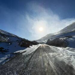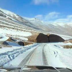 Finalement, vers 2’600 m d’altitude, les vues sont à couper le souffle. Les températures passent en dessous de 0°C, des rafales violentes secouent la voiture et, la neige étant présente sur les routes, le 4x4 reste enclenché 💪🏻.