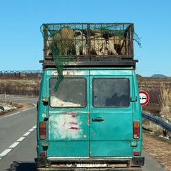 Nous avions réservé un ferry pour le matin à dix heures, mais finalement une place s’est libérée sur le bateau de 20 heures. Pourquoi pas. Arrivés au port deux heures avant le départ, nous découvrons, dans les files d’attente, des familles qui retournent au pays en voiture ou en camionnette, remplies à ras bord d’affaires et de cadeaux pour tout le monde. Quelques touristes, et encore moins de 4x4.