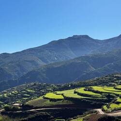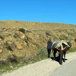 La nature a radicalement changé. Nous sommes désormais entourés de verdure jusqu’à 1’300 mètres; les champs sont travaillés, majoritairement à l’aide d’ânes, partout ou il semble possible de cultiver céréales, légumineuses, oliviers ou figuiers, ainsi que le kif (cannabis), à ce qu’il paraît. Dans aucune autre région on ne nous en avait proposé autant qu’ici; j’imagine donc que les plantations se trouvent à l’abri ou dans des coins plus reculés encore.