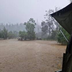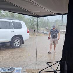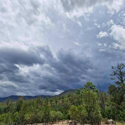 Sitting in the stream reading our books heard a few slight rumblings of thunder in the distance,...