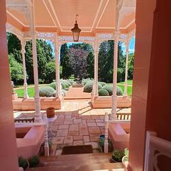 Stunning National Trust property in beautiful little country town of Bowra. Cooling off now after a warm 37° day. Staying at Goulburn, clam to fame is a massive sheep statute (which I'll findLæs mere