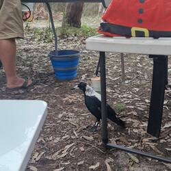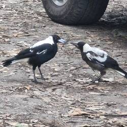 Alex does dishes, Mumma pie looks for dinner for her baby. Baby pie is big enough to get its own.