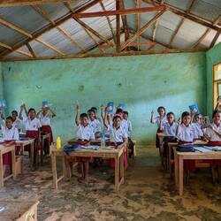 Yohannes Cousin Tino ist Lehrer in der örtlichen Grundschule, die wir heute morgen besuchen. Zunächst treffen wir im Lehrerzimmer die Lehrer, für die Yohannes das Dolmetschen übernimmt. In derLäs mer