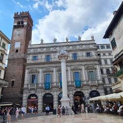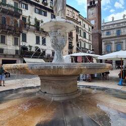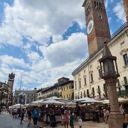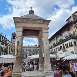 Die Piazza delle Erbe ist der älteste und historisch bedeutendste Platz im Herzen von Verona, bekannt für ihre lebendige Marktatmosphäre und die umliegenden historischen Gebäude.