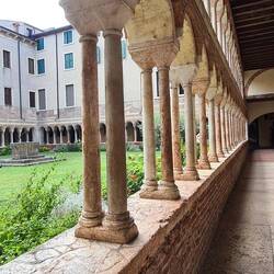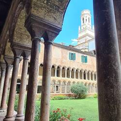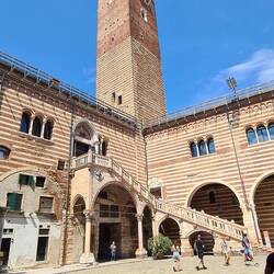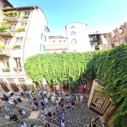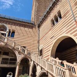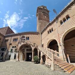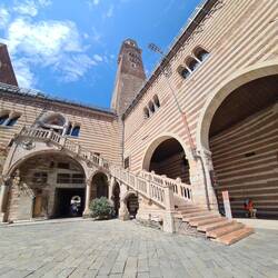 Der Cortile del Tribunale (Gerichtshof) ist ein historischer Innenhof in Verona, der für seine mittelalterliche Architektur und freigelegten römischen Fundamente bekannt ist.