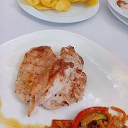 Hauptspeise, Hühnchen mit Gemüse und Bratkartoffeln