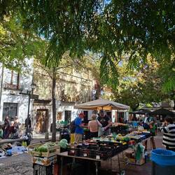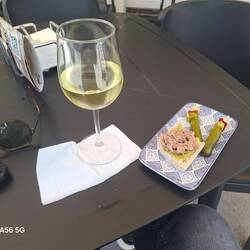 Erstmal Flohmarkt... dann bei Bodega Francesco, mega Gaststätte, Menü 13.5o Euro, wir wollten aber nur mal schauen, sitzen bei Tinto Verano und Tapas.