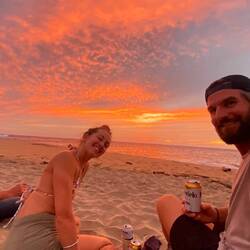 We had set up on a log of driftwood and all had our stuff laying around. The waves had been fairly dumpy but hadn’t come close even once at this stage. Just as the light started to fade, a massive wave washed over the lip of sand and through our picnic! Suddenly there were thongs, cans, and bags getting washed back down the beach. And by annoying fluke, just as this happened some police came onto the beach to check that no one was leaving a mess 🤦♂️.