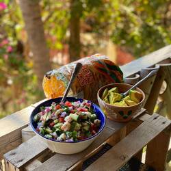 With some inspiration from a very extroverted Mexican neighbour that we’d had at Posada Kaly, we set about making our very own Ceviche. It’s made by simply marinating the diced fish in lime juice, before mixing it in with diced tomato, cucumber, coriander and red onion. Both fresh and super easy.
