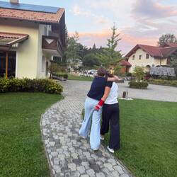 Nachdem die Autos wieder schwer bepackt waren, kam der Moment der großen emotionalen Verabschiedung. Umarmungen, Winken, ein bisschen Wehmut in den Augen – wie auf einem Bahnsteig im alten Schwarz-Weiß-Film.