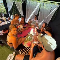 Die Damen versanken – oder besser gesagt versumperten – in einer gemütlichen Beachbar. Campari, Kaffee, Cocktails – Hauptsache, der Blick aufs Wasser war frei und die Gespräche endlos.🍹