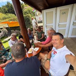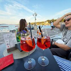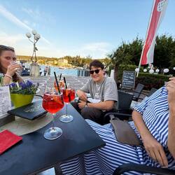 Als die Sonne sich langsam neigte, zogen wir wieder hinauf zu den Ferienhäusern – begleitet von einem feinen Aperol-Ausklang. Gläser klirrten, Orangenstücke schwammen, und die Stimmung war so gelassen, dass man fast vergessen hätte, dass der Tag eigentlich vollgepackt war wie ein Actionfilm.