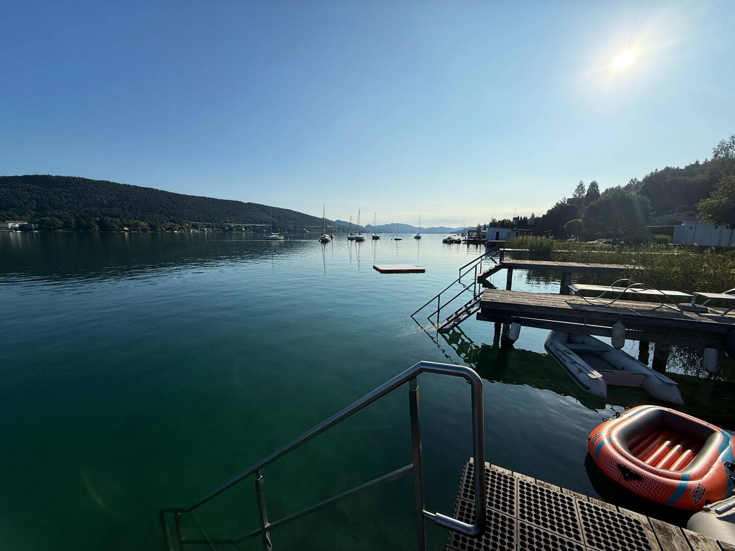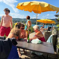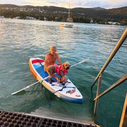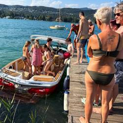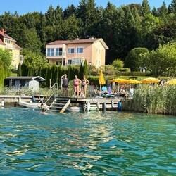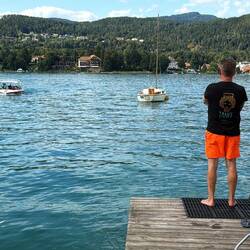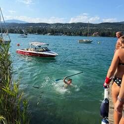 Der Freitag, 22. August, war leider schon unser letzter Urlaubstag. Doch als hätte der Wörthersee selbst gewusst, dass wir uns verabschieden müssen, zeigte er sich noch einmal von seiner allerbesten Seite. Das Wetter war zum Niederknien: strahlender Sonnenschein, wolkenloser Himmel, und der See schimmerte in sattem Türkis bei angenehmen 25 Grad Wassertemperatur – ein Traum.