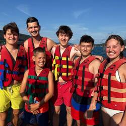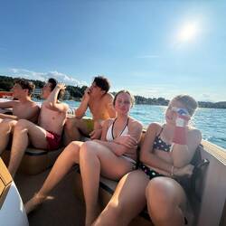 Natürlich durfte unser persönliches Highlight nicht fehlen: ein letzter Ritt mit unserem quasi privaten Motorbootfahrer. Noch einmal raus auf den See, noch einmal die Luftcouch vollgas über die Wellen gezogen, noch einmal Kreischen, Lachen und das Gefühl, über dem Wasser zu fliegen.🚤