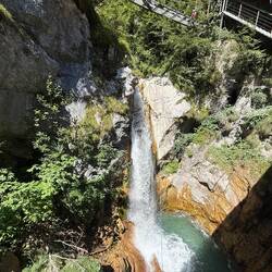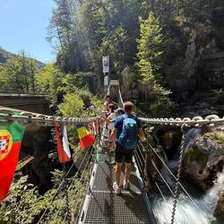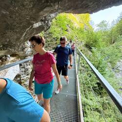 Frisch gestärkt ging es dann los zur sagenumwobenen Tschepperschlucht. Schon der Name klingt nach Abenteuer, und genau das bekamen wir. Rund 6 Kilometer Wanderung führten uns durch eine wilde, rauschende Klamm: Holzstege, Wasserfälle, kühle Felsen – die Natur zeigte sich von ihrer schönsten Seite, und die Kinder von ihrer lautesten.
