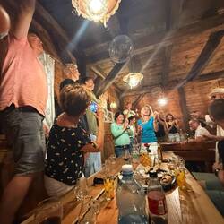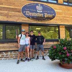 Ziel war das Gasthaus mit dem wohlklingenden Namen „Deutscher Peter“. Dort gab es die verdiente Belohnung: Wurstsalate, Speckbrote und natürlich den unvermeidlichen Kaiserschmarrn. Die Tische bogen sich, die Gläser klirrten, und die Wanderer verwandelten sich in zufriedene Schlemmerer.