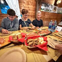 Zurück im Ferienparadies Muschet herrschte dann allerdings auch ein bisschen Wehmut: Anna-Sophie, Florian und Jan mussten uns leider schon verlassen, während Moritz bereits am Vorabend den Zug nach Hause genommen hatte. Ein kleiner Abschiedsschmerz – doch wie das im Familienurlaub so ist, trösteten wir uns schnell mit der Vorfreude aufs Abendprogramm.