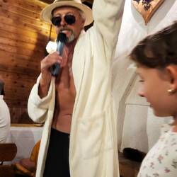 Unglaublich, aber wahr: Udo Jürgens war auferstanden – zumindest in Gestalt eines charmanten Entertainers, der sich mit weißem Bademantel und den schönsten Schlagern in unsere Herzen sang. Wir klatschten, lachten, sangen mit, und irgendwann war klar: Dieser Abend würde in die Familiengeschichte eingehen – als der Tag, an dem der Udo vom Wörthersee leibhaftig im Ferienparadies Muschet erschien.