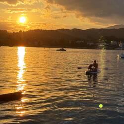 Und dann, zum großen Finale, schenkte uns der Wörthersee noch einen Sonnenuntergang wie gemalt. Der Himmel glühte in Orange- und Rottönen, das Wasser spiegelte wie flüssiges Gold – ein Bild, das man so schnell nicht vergisst.