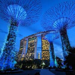 Singapore lights up at night! The waterfront area at Marina Bay is so pretty, and a must is the stunning light and sound show at Gardens by the Bay, Supertree Grove 2x every night.