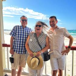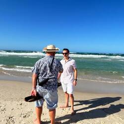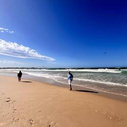 Beach day.. went to Home beach close by.. beach was lovely, the sand so white, & silicone which squeaked under foot. Had a swim, the sea was blue , warm & rolling waves. I had a walk along the beachRead more