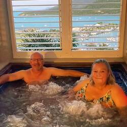 Has a lovely lie in , was very overcast . J&P headed off for town with an umbrella. Thunder started to roll around the bay and we could see rain in the distance. It was lovely to sit on the balconyRead more