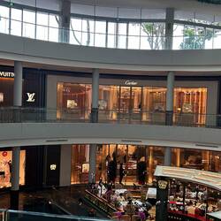 Drove to the Indooroopilly shopping centre to buy some presents to take back home .
