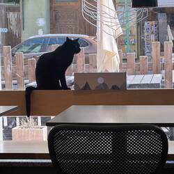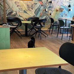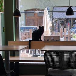 Ristorante vegano con gatti che circolano liberamente tra i commensali