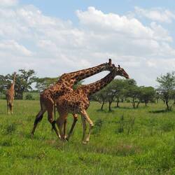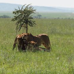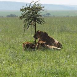 In der Serengeti angekommen, waren wir etwa 4–5 Stunden auf Pirschfahrt. Wir hielten Ausschau nach den verschiedensten Tieren und wurden reich belohnt: Wir sahen Giraffen, eine ganze Löwenfamilie, Adler und in der Ferne sogar zwei Geparden – was für ein Anblick!
