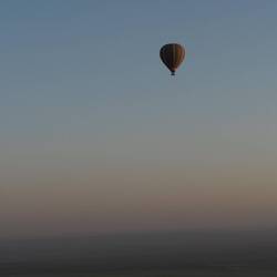 Der Wecker klingelte bereits um 04:15 Uhr. Um 04:40 Uhr wurden wir von einem fremden Fahrer abgeholt. Warum so früh? Wir machten eine Ballon-Safari. Nach etwa einer Stunde Fahrt erreichten wir den Startplatz. Insgesamt waren wir acht Personen, die gemeinsam in die Luft gingen.