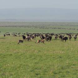 Ganz ohne Highlights verlief die Fahrt jedoch nicht. Unterwegs hatten wir grosses Glück und konnten zwei Geparden bei der Jagd beobachten – ein seltener und beeindruckender Moment. Zudem begegneten uns immer wieder Giraffen, viele Zebras und Gnus. Auch die bislang noch fehlenden Hyänen und Schakale liessen sich blicken und rundeten die Tierliste weiter ab.