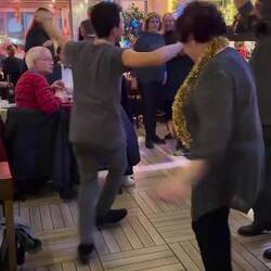 Der Silvesterabend in einem Rooftop-Retaurant entpuppt sich als total eng und laut mit türkischer und deutscher Musik und Tanz.