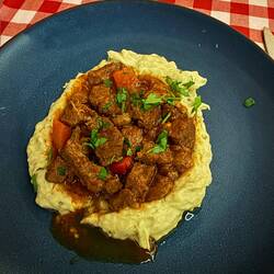 Anschließend geht es direkt zum Abendessen auf einer Rooftop Terrasse, die wie überall in Istanbul von Markisendächern überspannt wird. Zum einen ist es dort immer noch relativ kühl und zugig, zum anderen fängt es später an sehr stark zu regnen und auch zu gewittern. Das Wasser fließt zum Teil in solchen Strahlen durch das Dach, dass die Gäste dort fliehen müssen und das Wasser ständig eimerweise weg getragen wird. Zum Glück war unser Platz trocken.