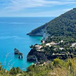 Wir sind dann weiter gefahren bis Nähe Mattinata auf den SP da Francesco, direkt am Strand. Die Strecke ist total schön und bietet schöne Ausblicke auf Grotten und Felsbögen. Dauernd muss man Czytaj więcej